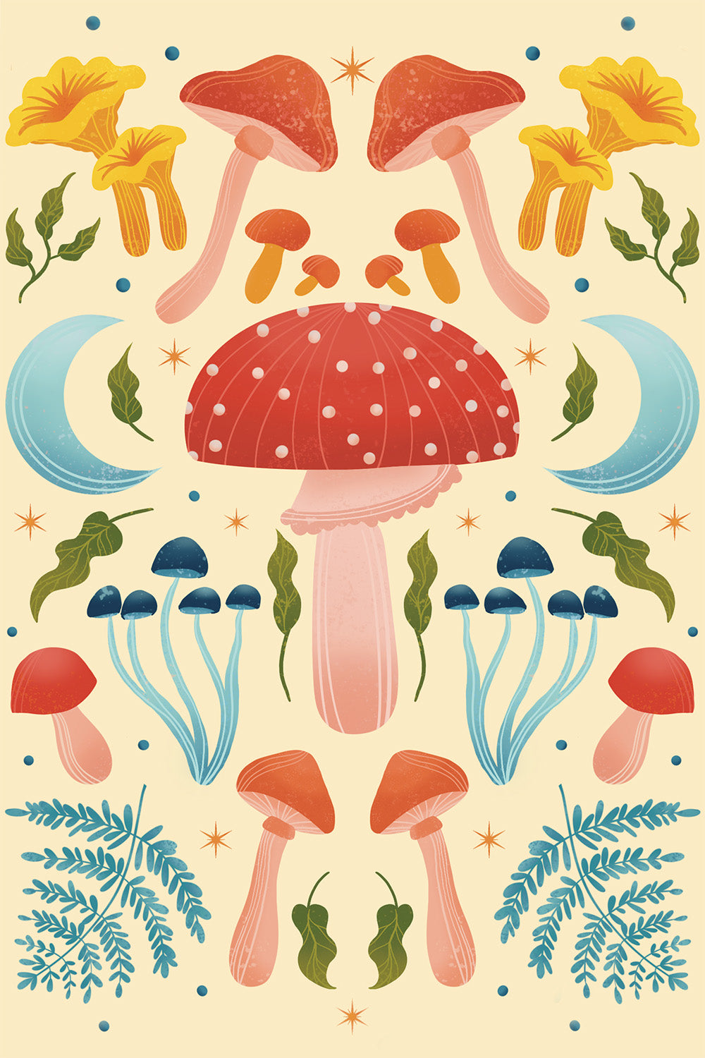 Leafy greens, flowers, mushrooms, and plants