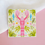 Two shrimp drift through an underwater garden in gentle harmony. A tender nod to companionship, connection, and being seen. This 4"x4" print, produced in Canada on high-quality cardstock, brings soft ocean energy to your space.